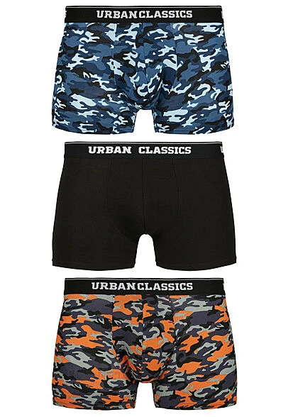 Urban Classics Herren 3-er Pack Boxer Shorts Blau Camo & Orange & Schwarz